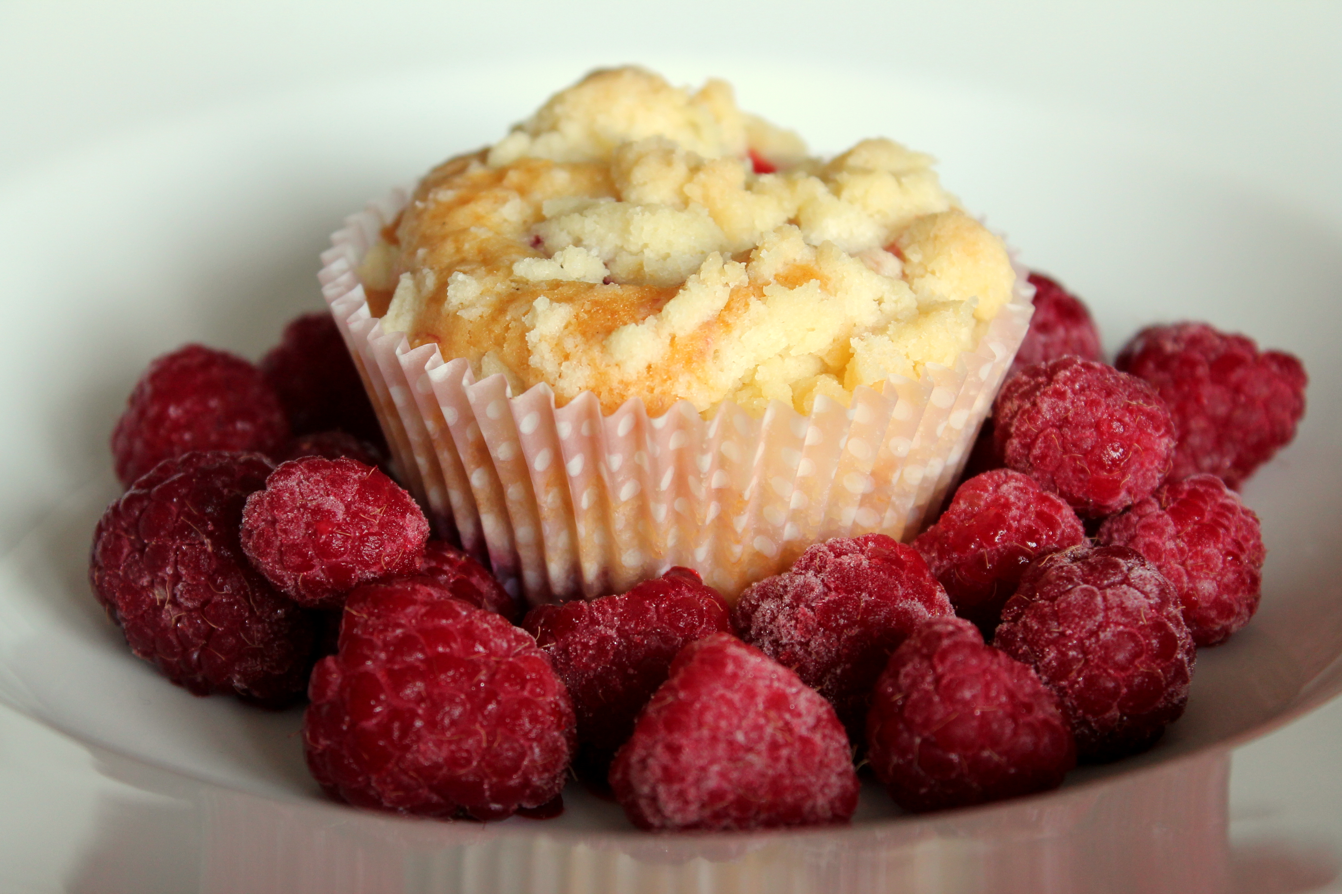 Heute gibt’s erstmal Himbeer-Streusel-Muffins.